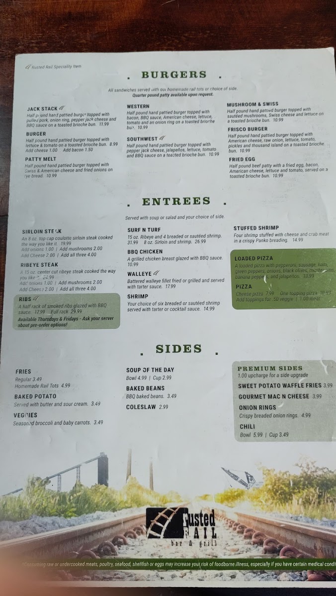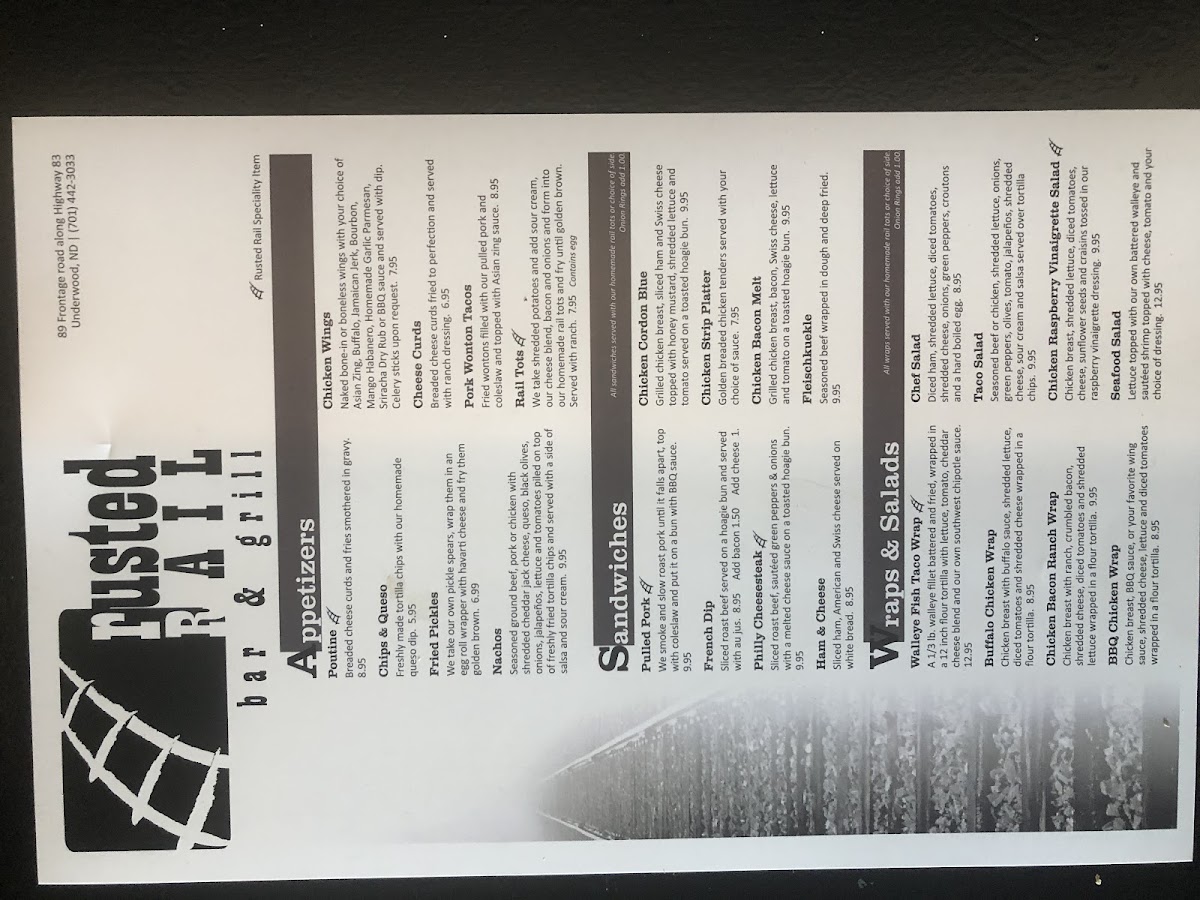 Welcome to Rusted Rail Bar & Grill, your new go-to destination for hearty meals and a warm atmosphere in Underwood, ND. Located at 89 Frontage Rd, this charming establishment offers an eclectic menu designed to satisfy every palate.